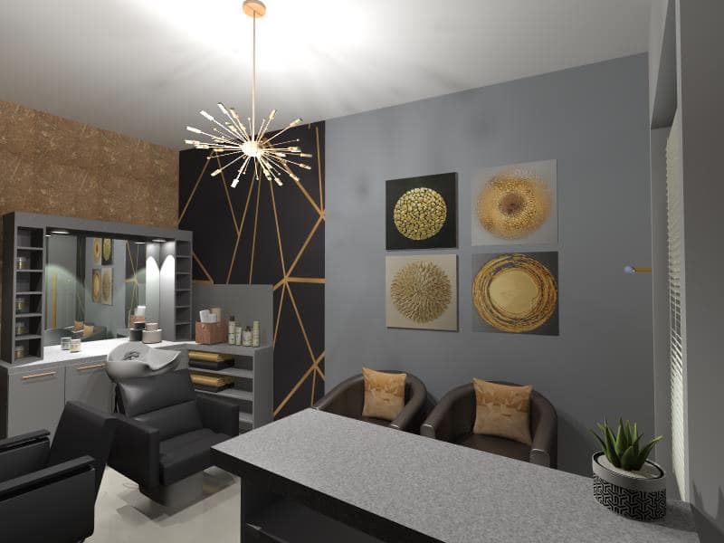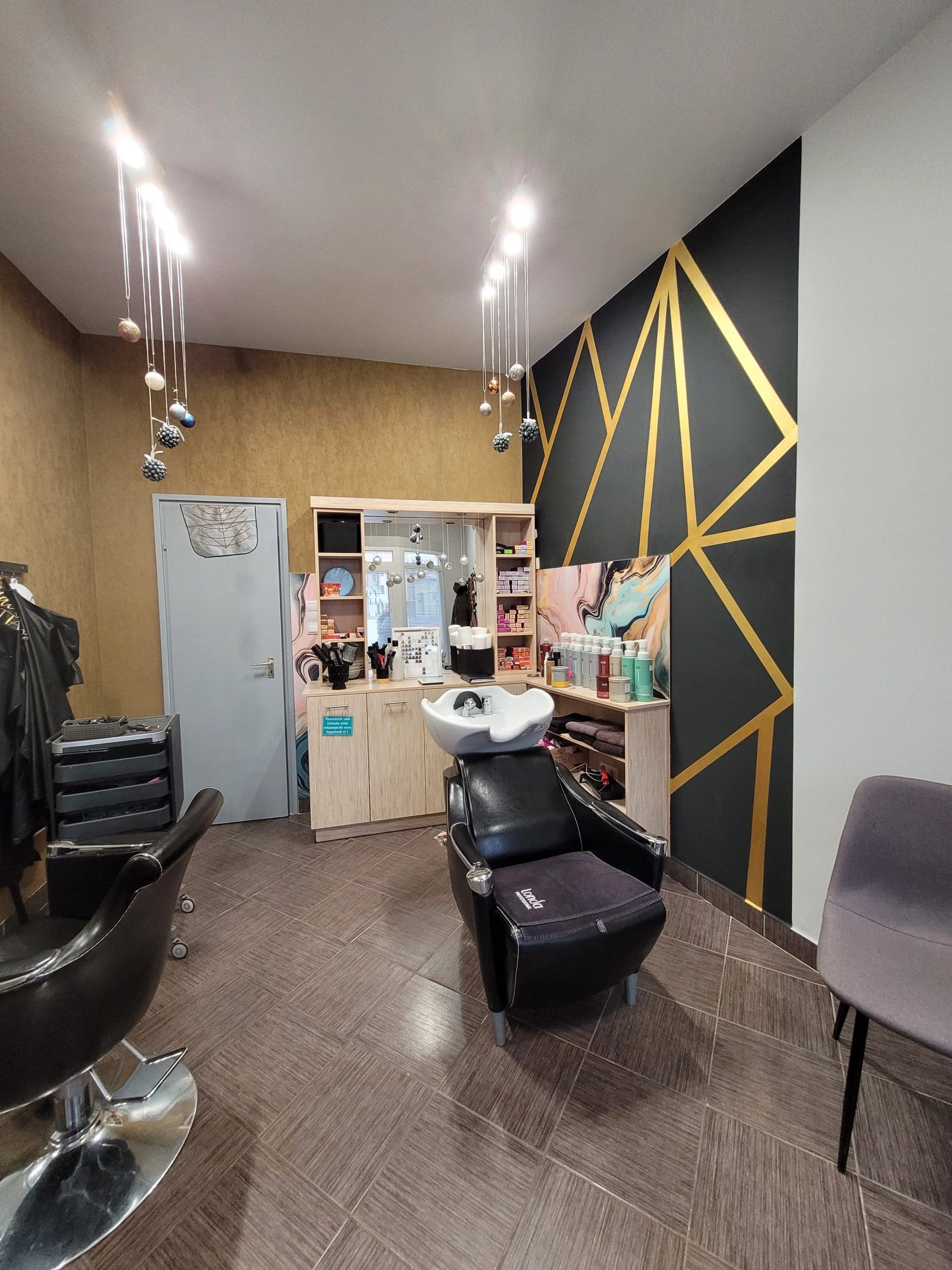 Fodrász üzlet készül, egy fiatal, lendületes hölgynek, akinek fontos a miliő, ami körülveszi és szeretné, ha vendégei is ebben a remek, igényes környezetben újulnának meg a kezei alatt. A hölgyek tudják, hogy egy fodrász nem csak fodrász, aki hajat igazít és frizurát készít, hanem a lelkünket is ápolja egy-egy több órás művelet alatt. Éppen ezért, az enteriőr, ami körülvesz bennünket, fontos szerepet játszik. Jól esik a szemünknek, lelkünknek a pazar belső tér. A kiindulási alap színvilágban az üzlet logója volt.