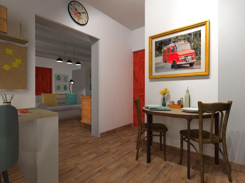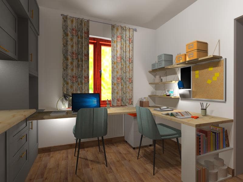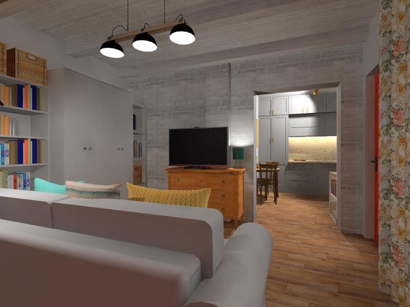 Szervezkedés, titkos helyszínbejárás, beszélgetés az igényekről, funkció-kiegészítésekről, életvitelüknek megfelelően. Mivel az egész ház nem nagy alapterületű, így alaposan át kellett gondolni, hogy hogyan bútorozzunk úgy, ami minden igényt kielégít.Valamint, a helyiségek világosítására is figyelmet fordítottunk, mert az előtető és fák miatt kicsit sötét van bent. Világos bútorokkal, fehér falakkal, és a fa mennyezet világosra festésével javítottunk ezen. A kedvenc, egyben a legnehezebb helyiségem a konyha-étkező-dolgozó volt, ahol kettejük munkaállomása is – ami eddig nem volt-, étkező is, egy mini konyha is és bőséges tárolóhely is helyet kapjon. A nappali szintén kettejükre szabott, könyvszekrényekkel, sok tárolóval, kényelmes kanapéval, hogy az örökmozgásukat végül jól kipihenhessék.Egyedül a hálószoba megújításánál gondoltam arra, hogy vigyünk bele egy kis pihe-puha, hívogató bézs színt, némi barokkos mintával, teljesen más hangulatban, mint a lakás többi, praktikusságra, tisztaságra, átláthatóságra tervezett része.